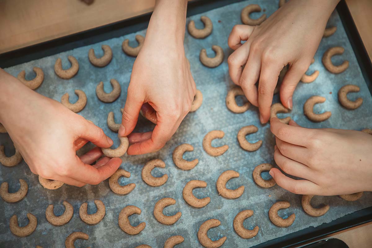 Am Samstag vor Weihnachten entstanden hunderte zart-mürbe Vanillekipferl, fluffige Polo Nero und viele andere Kekssorten, damit jede und jeder am Keksteller sein Lieblingsgebäck wiederfindet.