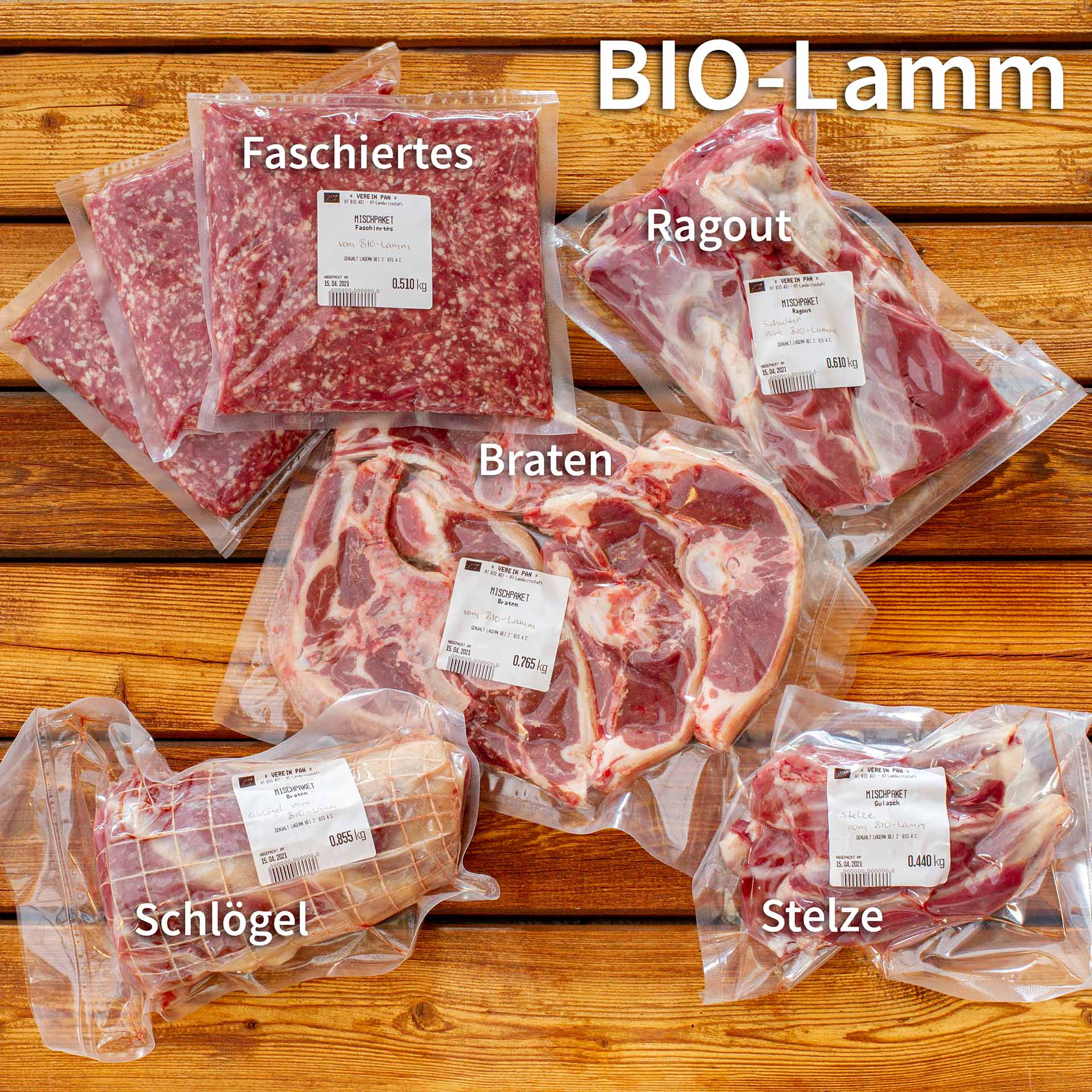 Bei uns gibt es ausschließlich Mischpakete zu kaufen – entweder das kleine 4kg-Mischpaket oder das „halbe Lamm“, ein ca. 8kg-Mischpaket (je 20€/kg).