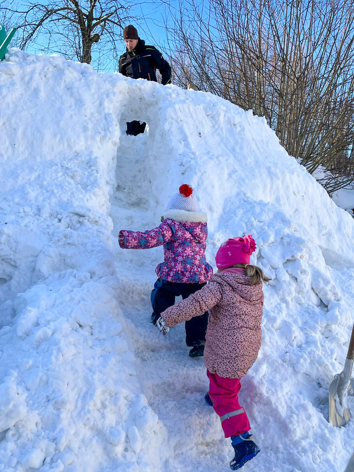 Unsere beachtliche Schneeburg hielt auch in den kommenden Tauwetter-Tagen noch lange stand und blieb für die Kinder bespielbar - ganz genau wie wir uns das für sie gewünscht hatten.